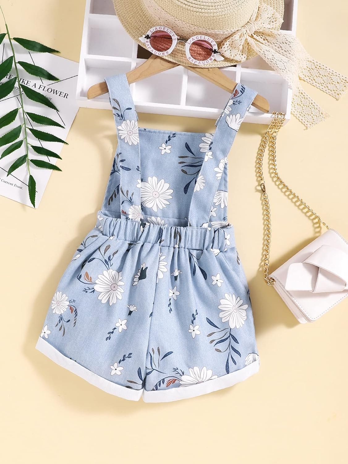 - Design: Sleeveless, straps, button, pocket, ripped, floded hem, solid color, casual style
