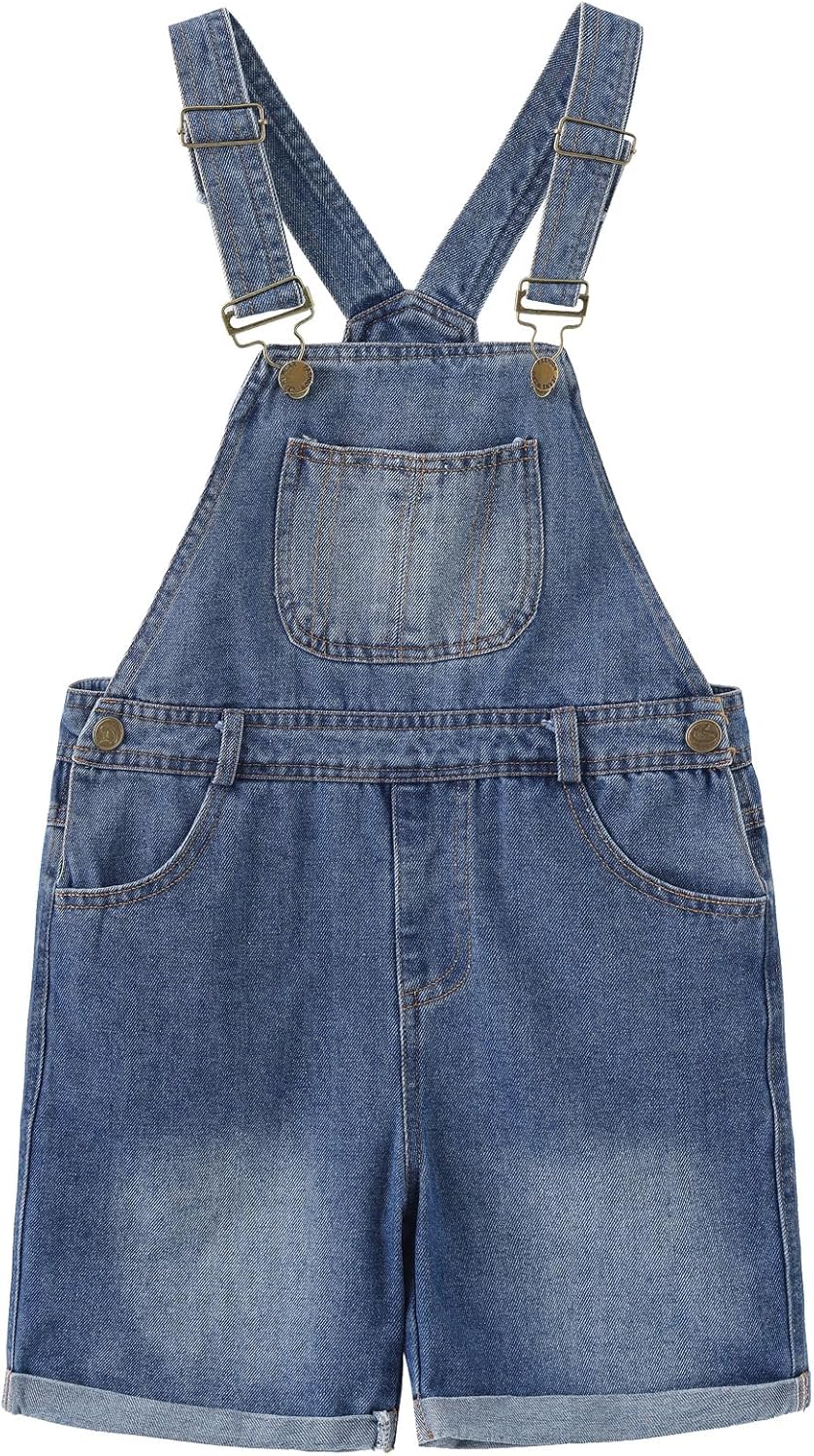• Girls bib denim short overalls made with high-quality, durable denim fabric, these overall shorts are both stylish and functional.