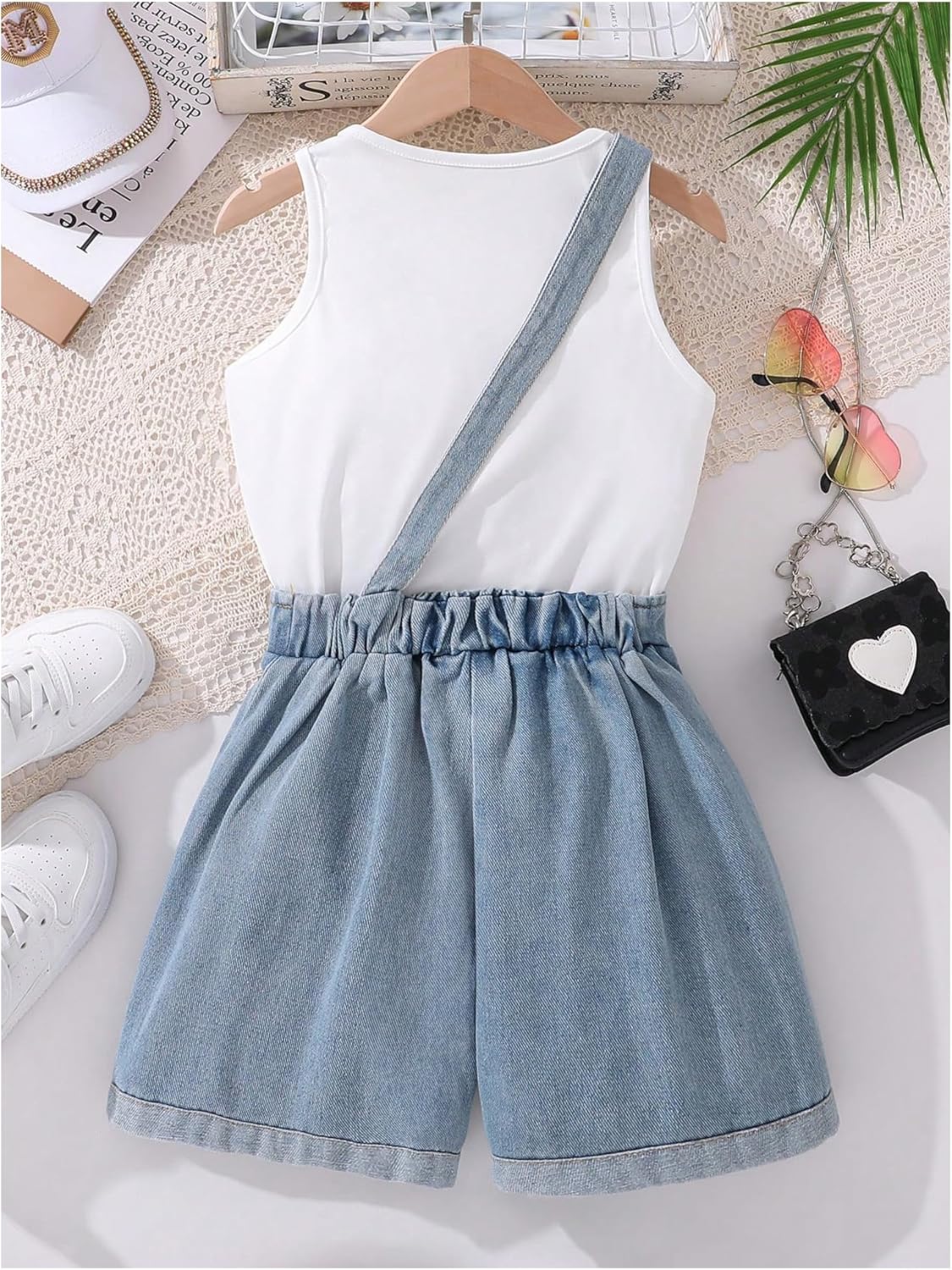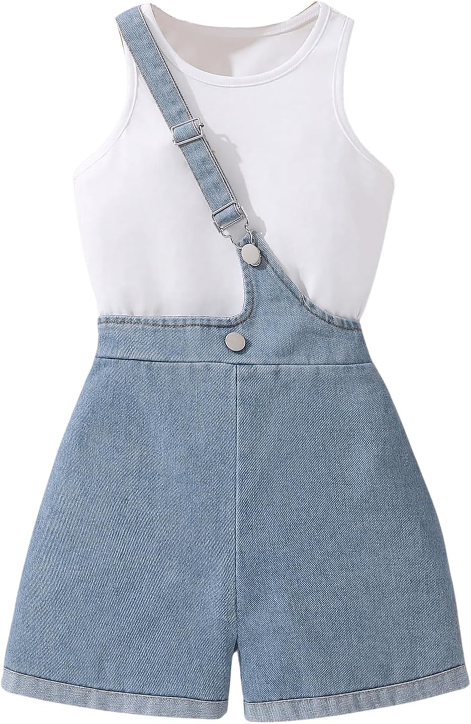 - Features: summer outfits for girls 2 piece set, matching going out set, overall shorts and tank set, denim overall shorts, crew neck tank top, adjustable strap