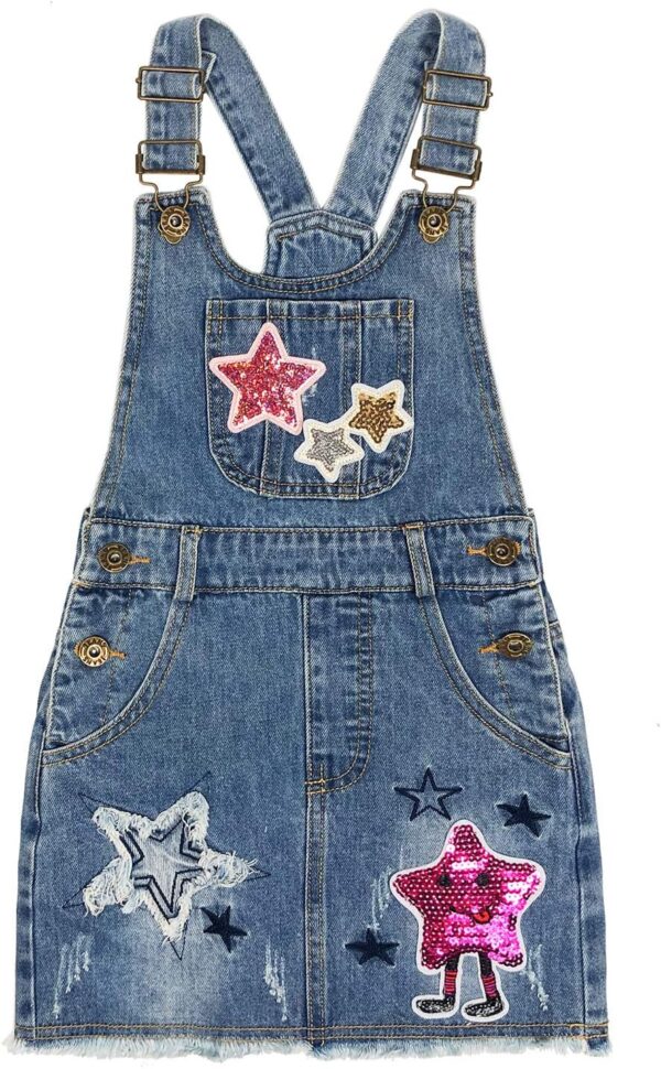 - Design features: Sequin stars and cute embroideries; Adjustable straps; five classic pockets.