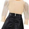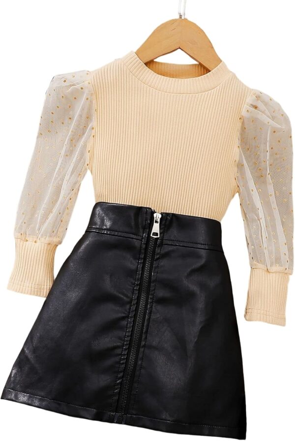 - Features: Crewneck neck, Contrast Mesh long sleeve, Zipper, Rib-Knit,casual,leather skirt
